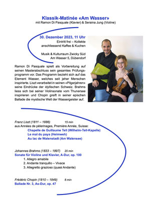 russisch-schweizerischen Komponisten Paul Juon nordwärts wo zum Schluss - stürmisch & innig - Griegs einzige Cello-Sonate Op. 36 den Höhepunkt des Konzertes beschliesst.